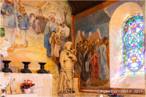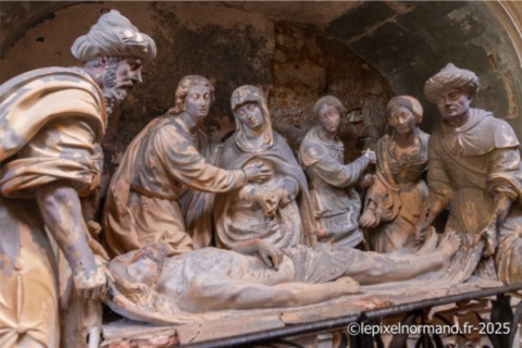 La chapelle de l'église abrite d'exceptionnelles fresques peintes et un remarquable groupe sculpté...