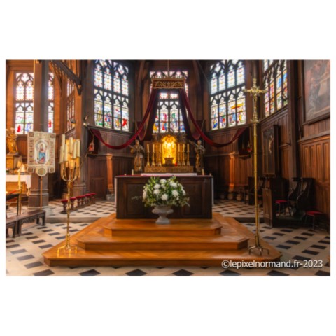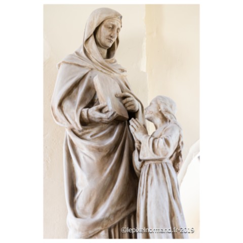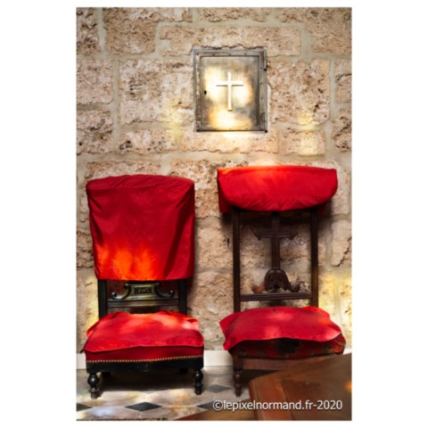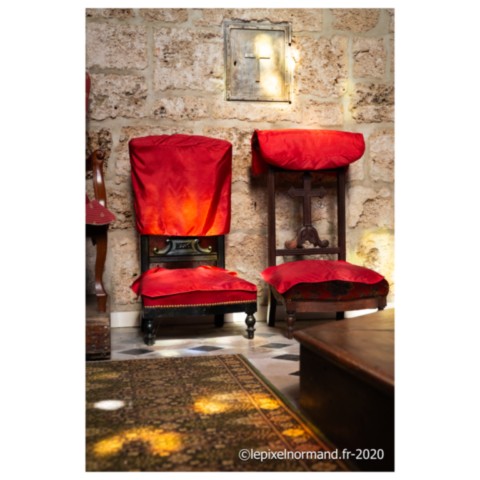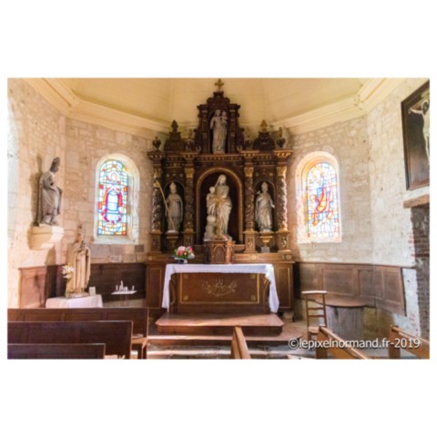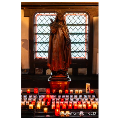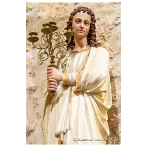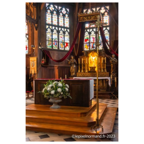 Comme dans de nombreuses églises rurales de Normandie, le chœur abrite les torchères des frères de la confrérie de charité. Rattachées à une paroisse, leur création remonte au XIe et XIIe siècles. A cette époque, les règles minimales d’hygiène sont inconnues et les grandes épidémies très meurtrières, telle que la peste, déciment la population. Les cadavres restent dans les maisons et jonchent les rues. Bravant les risques d’être contaminés et de succomber eux-mêmes aux terribles maladies, des groupes d’hommes s’unissent afin d’enterrer les morts et de venir en aide aux familles touchées. Les torchères présentes dans le chœur de l’église sont un des symboles des frères de charité. A l’époque, les inhumations ont lieu généralement la nuit et la torchère, destinée à recevoir une lumière permettait de voir et d’être vu, avertissant les habitants, en plus du tintement de petites cloches, de s’éloigner du convoi mortuaire et d’éviter la contagion. Elles sont souvent accompagnées dans les églises de la bannière de la confrérie.