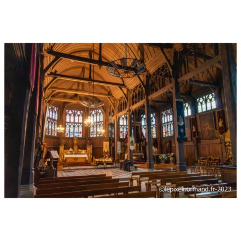 Église, un des rares édifices en France construit essentiellement en bois et dont la voûte ressemble à une coque de bateau retournée