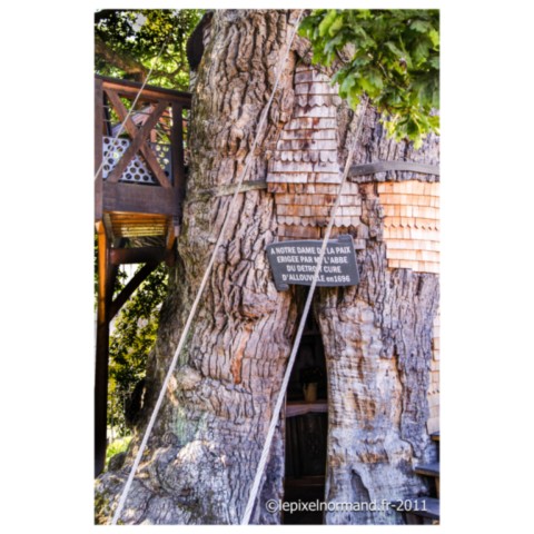 Ce chêne est réputé être le plus vieux de France. Il date du IXe siècle. Dans son tronc, creux, sont établies deux petites chapelles superposées. L'arbre est étayé et une partie de sa ramure est recouverte d'essentes (bardeaux) pour le protéger. Sa hauteur est de 18 m et sa circonférence de 15 m à un mètre du sol. Jadis entouré d'autres arbres, le chêne a échappé à plusieurs reprises à la destruction, notamment après la Révolution. Selon un récit local transmis oralement jusqu'à son recueil en 1914, une foule révolutionnaire en liesse envisage d'incendier ce symbole de l'Ancien Régime. L'arbre est sauvé par le maître d'école du village, qui y appose l'écriteau temple de la Raison à la place de l'ancien qui le condamnait. Il abrite la chapelle de la Vierge et la cellule de l'ermitage, située à l'étage supérieur du chêne. Selon la légende elle fut aménagée par le curé de l'époque, au XVIIe siècle pour un ami ermite.