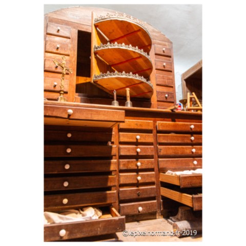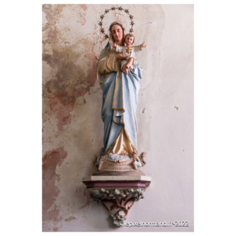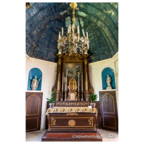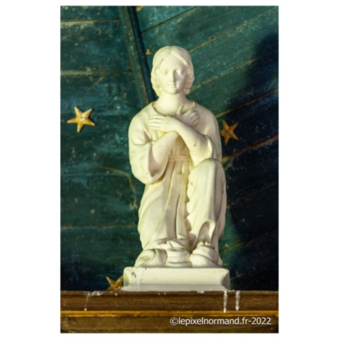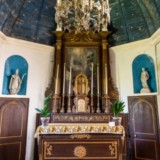 Plusieurs curiosités et découvertes dans cette église. Tout d’abord le petit porche. Lors de mon reportage photos, je suis accompagné du maire de la commune et de son épouse, vice-présidente de l’association de sauvegarde de l’édifice. Celle-ci m’explique que le porche était jadis appelé par les habitants du village le "caquetoire". Les femmes (et les hommes aussi probablement…) pouvaient s’y abriter après la messe pour caqueter (parler à tort et à travers) et ainsi échanger les nouvelles, les ragots et les potins du coin. Il parait que certaines sorties de célébrations furent très animées et houleuses. Cependant, on retrouve ces petites constructions et la même appellation dans d’autres églises de la région. On trouve également de magnifiques fonts baptismaux du XVe siècle. De forme octogonale, ils présentent un riche décor sculpté : grappes de raisins, figures géométriques et tête d’enfant. L’édifice abrite également deux statues de saints : une de Saint-Expedit et une de Saint-Erme. Le maire de la commune m’explique que Saint-Expedit était un commandant romain d’Arménie, converti au christianisme et décapité en 303 pour cette raison. Ce saint est le patron des étudiants. On invoque son intercession dans le cas d’affaires urgentes, complexes ou de conflits ou encore de réussites à des examens, et il me montre une dizaine de cartes postales de l’église insérées derrière les plaques de remerciements placées sous la statue en me disant : "Voyez, nous sommes début juillet, c’était les examens notamment du bac il y a une quinzaine de jours. Il y a donc une dizaine d’étudiants qui sont venus dans notre petite église pour que Saint-Expedit intercède dans la réussite de leurs épreuves. Nous les enlevons tous les ans sans jamais lire ce qui est écrit dessus…". L’invocation de Saint-Erme quant à elle, est en lien direct avec la fontaine qui coule au pied de l’église. Ce saint réputé guérisseur a la vertu de soigner les maux d’yeux. Les personnes viennent tremper un linge dans la source, puis se badigeonnent les yeux avant d’accrocher le tissu à la haie. Elles se rendent ensuite au pied de la statue dans l’église.