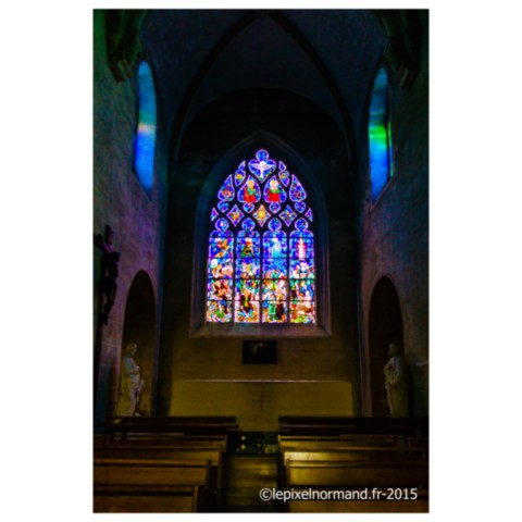 À voir : Ensemble de l'édifice, vitraux, statuaire, bataille de Normandie...