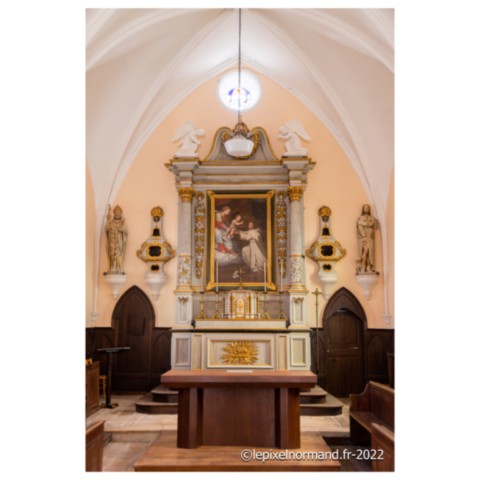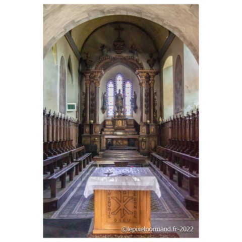 À voir : If pluri-centenaire, clocher, chapiteaux, boiseries, stalles, miséricordes, maître-autel et retable...
