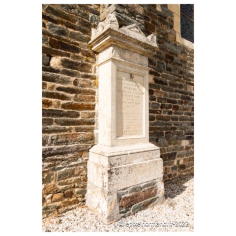 Des tombeaux sont incrustés dans les murs et un contrefort de l’église. À l’intérieur se trouvent des statues classées du début du XVIIIe siècle.