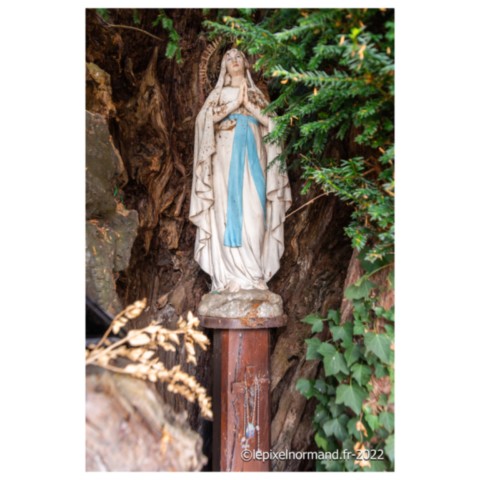 À la fin du XIXe siècle, la très pieuse propriétaire du château du village qui s’étendait sur 250 hectares de forêts, possédait également des fermes importantes aux alentours. Elle avait fait le vœu de construire une reconstitution de la grotte de Lourdes dans ses bois, si son mari se convertissait à la religion chrétienne. Quelques mois plus tard, c’était chose faite et la châtelaine exécuta sa promesse. En 1884, les travaux commencent, réalisés par les fermiers des châtelains. Elle fut inaugurée en 1885 mais pour tenir son engagement, la châtelaine contracta un emprunt de 25.000 francs qu’elle aura beaucoup de difficultés à rembourser. Elle mourut en 1907, dans la pauvreté, ayant dépensé tous ses biens en charité et à la réalisation de cette reconstitution.