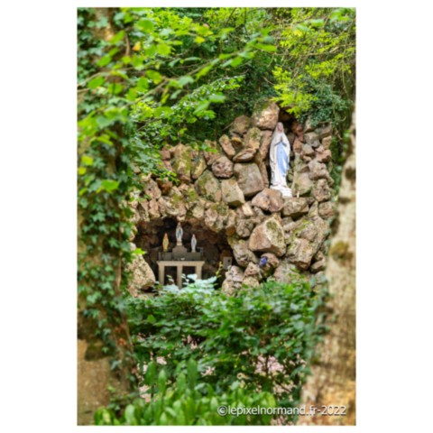Au bout du sentier de terre, une reconstitution de la grotte de Lourdes qui mènera la châtelaine à mourir dans la pauvreté