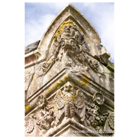Une chapelle seigneuriale abrite plusieurs tombeaux ; l’un deux est surmonté de la statue couchée du seigneur et de sa femme. Sur le devant sont représentés à genoux plusieurs membres de la famille. Malheureusement, l’église était exceptionnellement fermée lors de mon passage. Affaire à suivre…