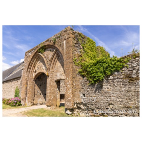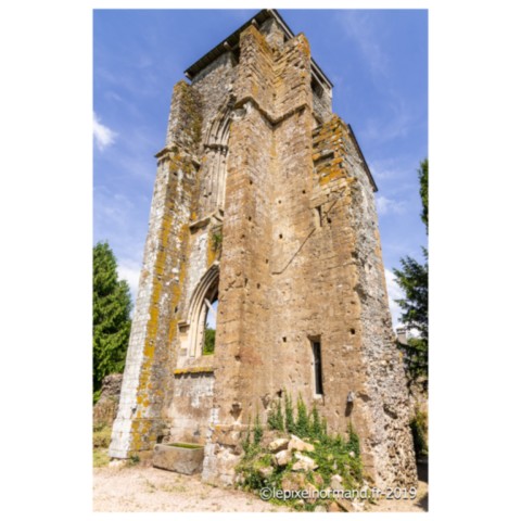 Vestiges du prieuré, un important portail protège les ruines de l’église et de la tour abbatiale