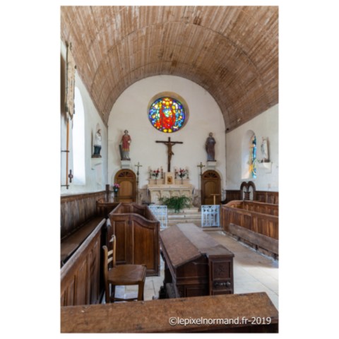 La chapelle date du milieu du XVIe siècle et fût un important lieu de pèlerinage où les chants religieux se mêlaient aux tintements des clochettes. Au début du XXe siècle, les processions ont disparues et la chapelle tombe en ruines. A partir de 1932, murs, clocher, charpente et plafond sont remis en état. 1933 voit, dans le respect des traditions anciennes, une nouvelle première procession implorant le grand pardon Normand du Saint. C’est également à cette période qu’un artiste peintre réalise 70m² des fresques murales représentant la vie du saint et de celle des Normands dans ce territoire. Ces réalisations sont dénuées de détails inutiles dans un coloris très doux. En 1984, huit fresques seront restaurées.