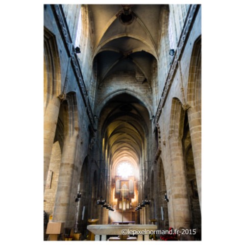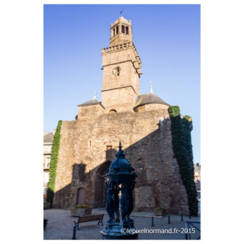 Jusqu’au XIIe siècle, les paroissiens de la ville disposaient d’une chapelle à proximité du donjon, mais elle se révèle rapidement trop petite face à la croissance de la population. Vers 1150, elle est remplacée par une chapelle romane extérieure à la première enceinte du château. Sur les bases de ce premier édifice sera bâti à partir de 1230, en style gothique primitif, une nouvelle église. Elle sera agrandie en différents styles jusqu’au XVIe siècle. Subissant les bombardements du 6 juin 1944, elle fut restaurée en 1948.