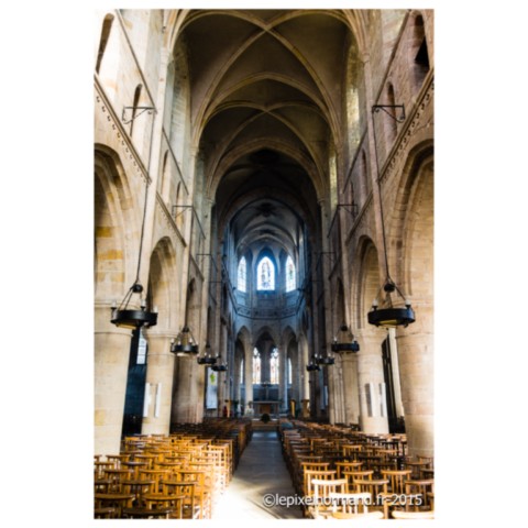 Cette église serait la plus ancienne de la ville, datant de la période romane du XIIe siècle. Elle fut agrandie et embellie au XIIIe siècle. Elle est saccagée pendant les guerres de Religion et à la Révolution Française. Son chœur est détruit au XIXe siècle. Touchée par les bombardements de juin 1944 comme toute la ville, elle dresse fièrement ses vestiges marqués.