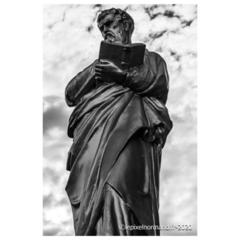 Église, rendez-vous au pied de la Vierge à l'enfant en passant les têtes de morts