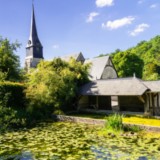 Un petit chemin ombragé mène dans la fraîcheur jusqu’à l’église qui fut édifiée au XVe siècle.