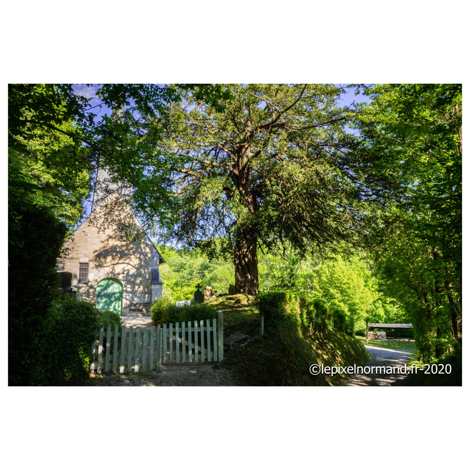 Au bout du chemin ombragé et dans un vallon creux du Pays d’Auge, l’église, ses graffiti, ses cadrans canoniaux et sa source aux guenilles
