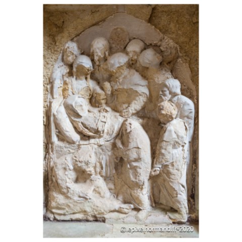À voir : Vestiges de l'édifice, clocher et haut-relief...