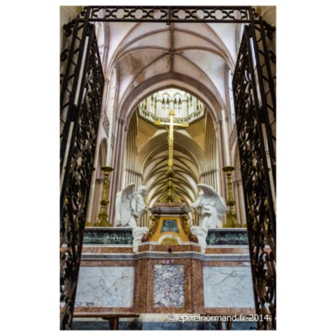 La toute première construction daterait de 430 à l’emplacement d’un temple gallo-romain. Elle sera dédicacée en 1056 en présence de Guillaume le Conquérant. Des remaniements ont lieu vers 1180. La nef est reconstruite au XIIIe siècle. Vers 1270, les chapelles sont créées entre les contreforts et la nef. Leur présence indique que plusieurs messes avaient lieu tout au long de la journée.