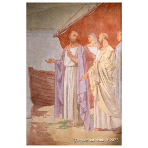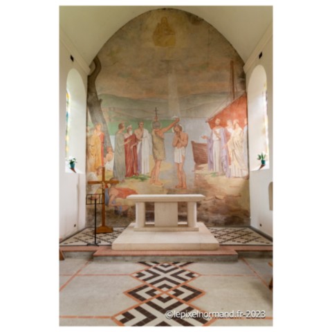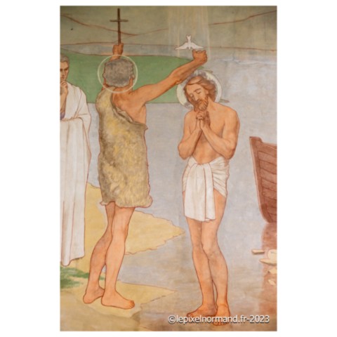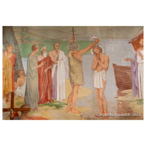 Depuis le remarquable gisant de femme, rendez-vous à la grande fresque du baptême