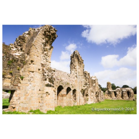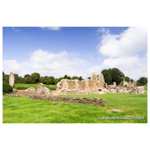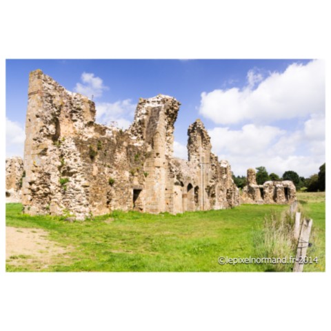 C’est Saint-Vital, alors chapelain dans une autre abbaye proche qui, souhaitant se retirer du monde, fonde avec quelques compagnons, sur des terres de forêt qui lui sont données, l’abbaye en 1112. Elle connait la prospérité jusqu’au XVIe siècle, fondant même d’autres monastères en Normandie et en Angleterre. Elle s’enrichit grâce aux dons du duc de Normandie et de ses vassaux. Elle possède également une quinzaine d’églises ainsi que des terres et reçoit même en 1172 la visite du roi Henri II d’Angleterre afin d’y rencontrer les émissaires du pape. L’église abbatiale sera construite en 1173 et consacrée en 1220. L’abbaye va subir la colère des Huguenots qui saccagent les bâtiments, volent les cloches, les calices, détruisent l’orgue et incendient le toit de l’abbatiale, mais celui-ci sera rapidement reconstruit. La Révolution va définitivement marquer la fin de la splendeur de l’abbaye puisque les dix-sept moines encore présents sont chassés par les habitants en 1789. A partir de 1791 et devenue bien national, le mobilier de l’abbatiale est vendu, les bâtiments servent de carrière de pierres, seules les reliques seront sauvées par quelques paroissiens. L’abbaye perd toute sa splendeur et parmi les quelques vestiges fragmentaires sont encore visibles la double porte romane de l’ancien réfectoire et les contreforts. Une maquette présente le site au moment de sa splendeur.