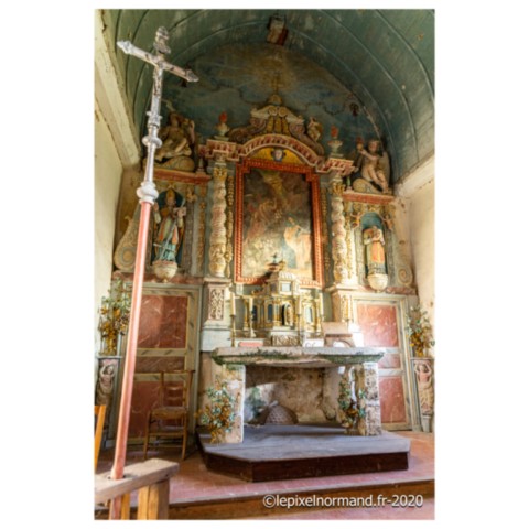 Afin de ne pas laisser la sculpture livrée aux caprices parfois rudes de la campagne et des hivers Normands, il fût décidé d’édifier une chapelle autour pour la protéger. Depuis, une célébration religieuse s’y tient chaque lundi de Pentecôte.