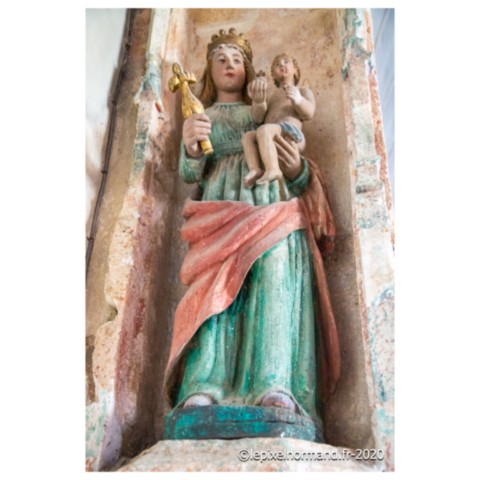 À côté de la porte d’entrée, dans une niche du mur extérieur, on peut apercevoir une statue de Saint-Mammès (ou Mamers) de Césarée tenant ces intestins dans les mains. Voici sa légende.