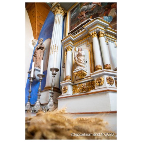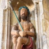 Église : depuis le saint tenant ses entrailles, se rendre après la Vierge à l’enfant vers l’ecce homo de bois polychrome