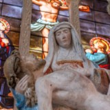Depuis le panorama sur le bourg, passer les riches sculptures du portail pour arriver à la Pietà, consolatrice des cris et des larmes NEW2024