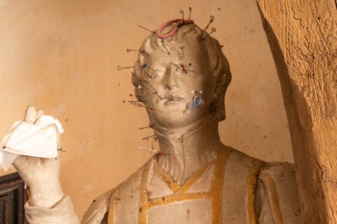Dans la grotte, cherchez la tête de mort près de la Sainte allongée...