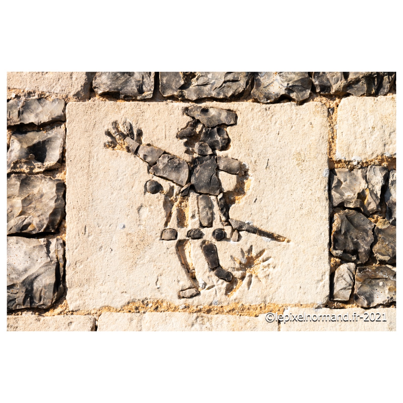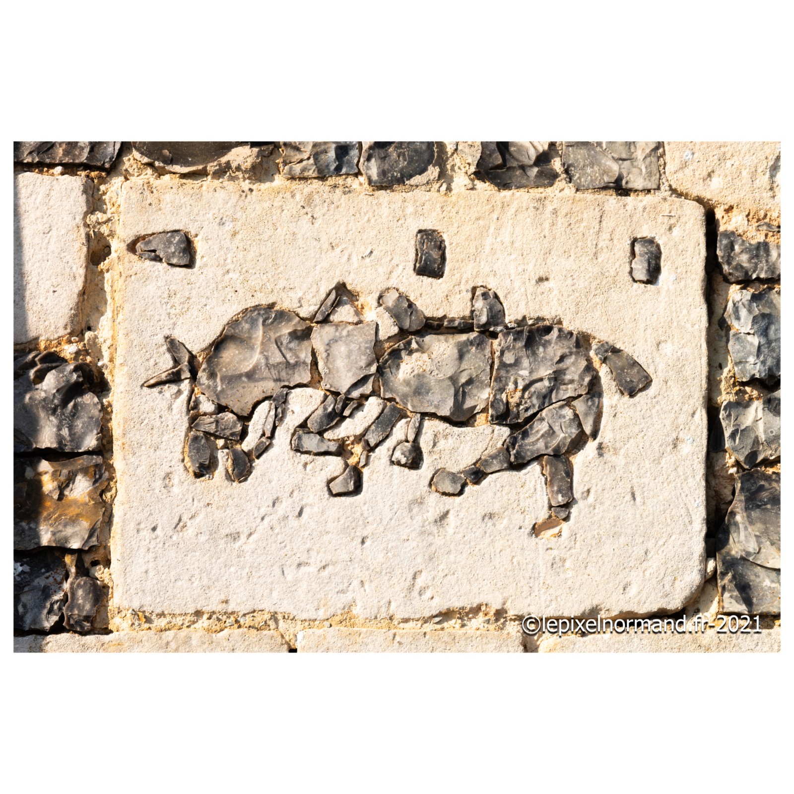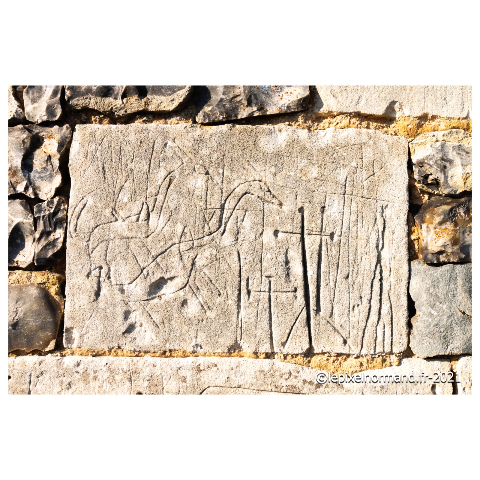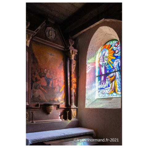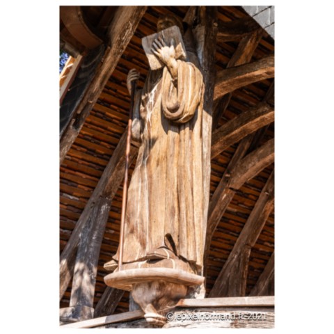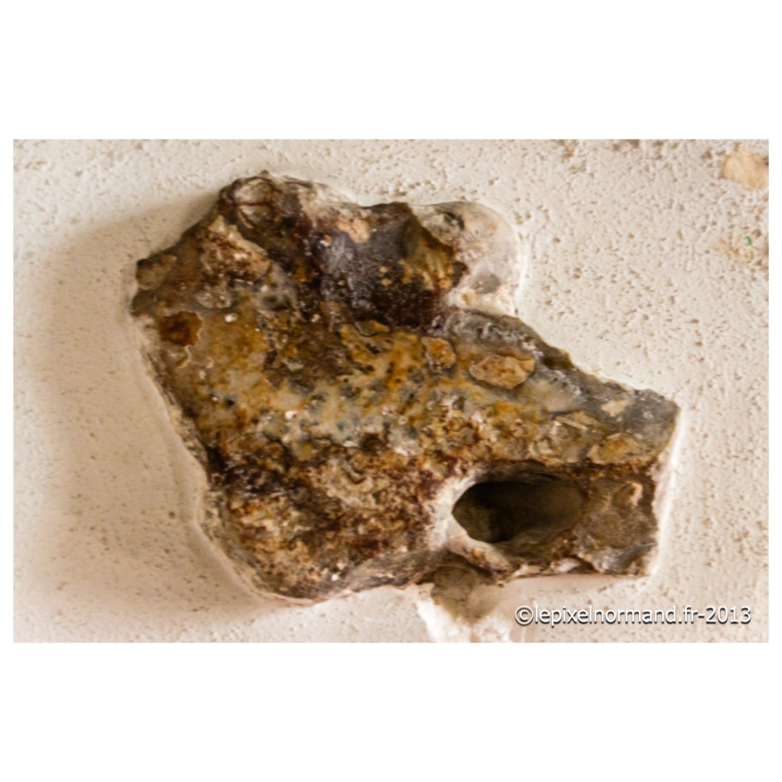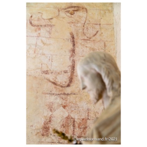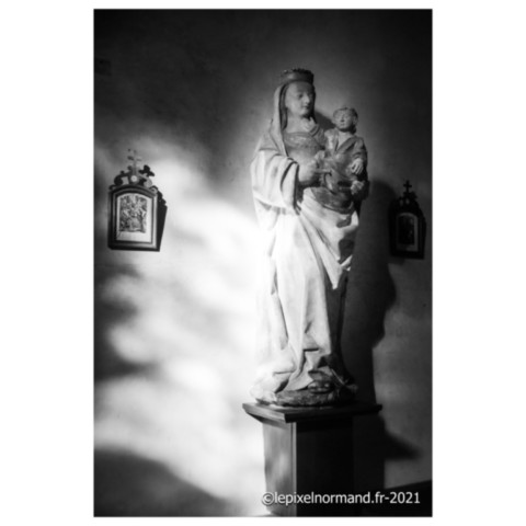 On raconte que c’est ce qui advint car la femme et la chaîne qui maintenait la pierre autour de son coup surnagèrent. En ex-voto et dans son repentir, le Sir fit encastrer la pierre miraculeuse dans le mur de l’église, juste au pied de la statue de Notre-Dame (photo 4 de l'église).
