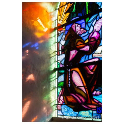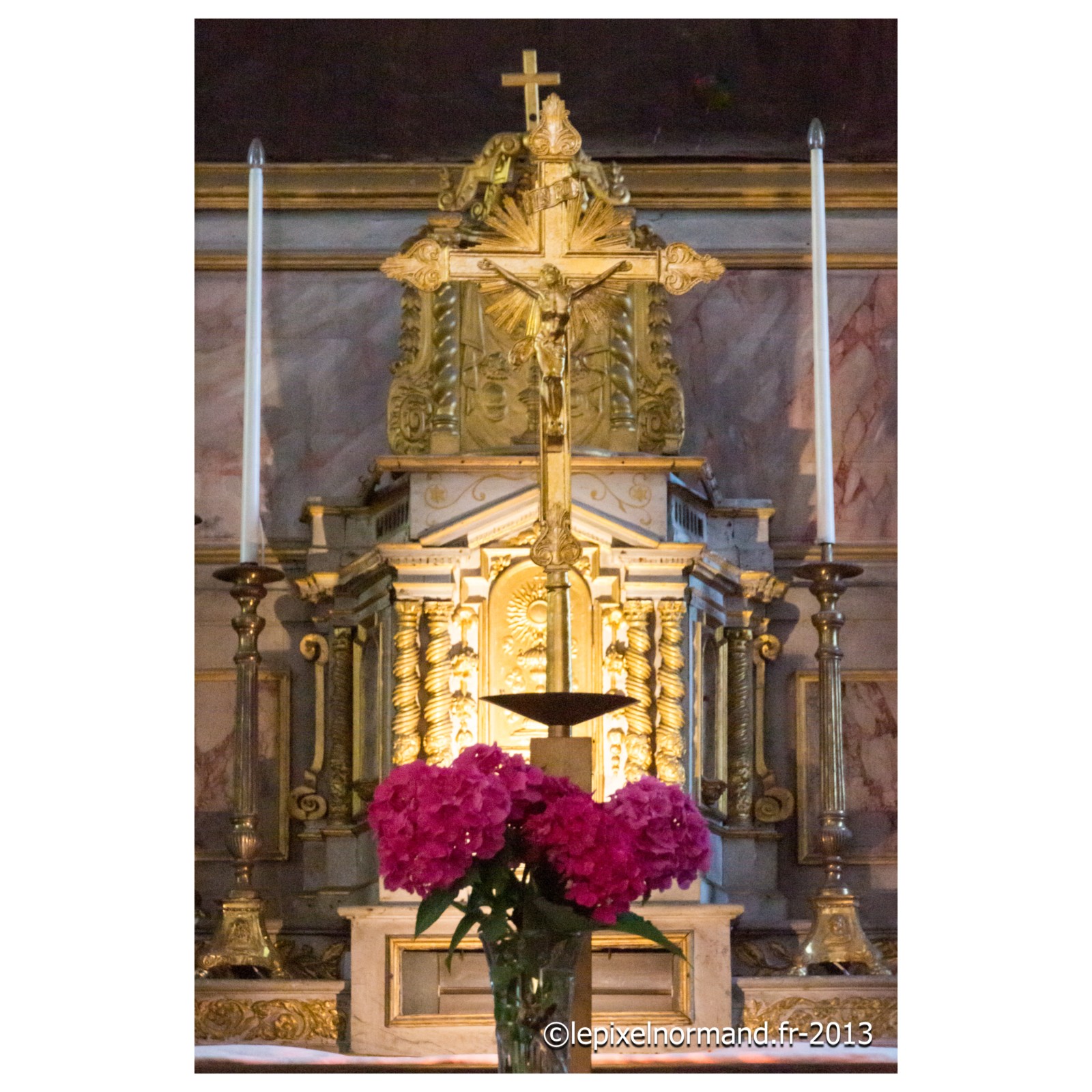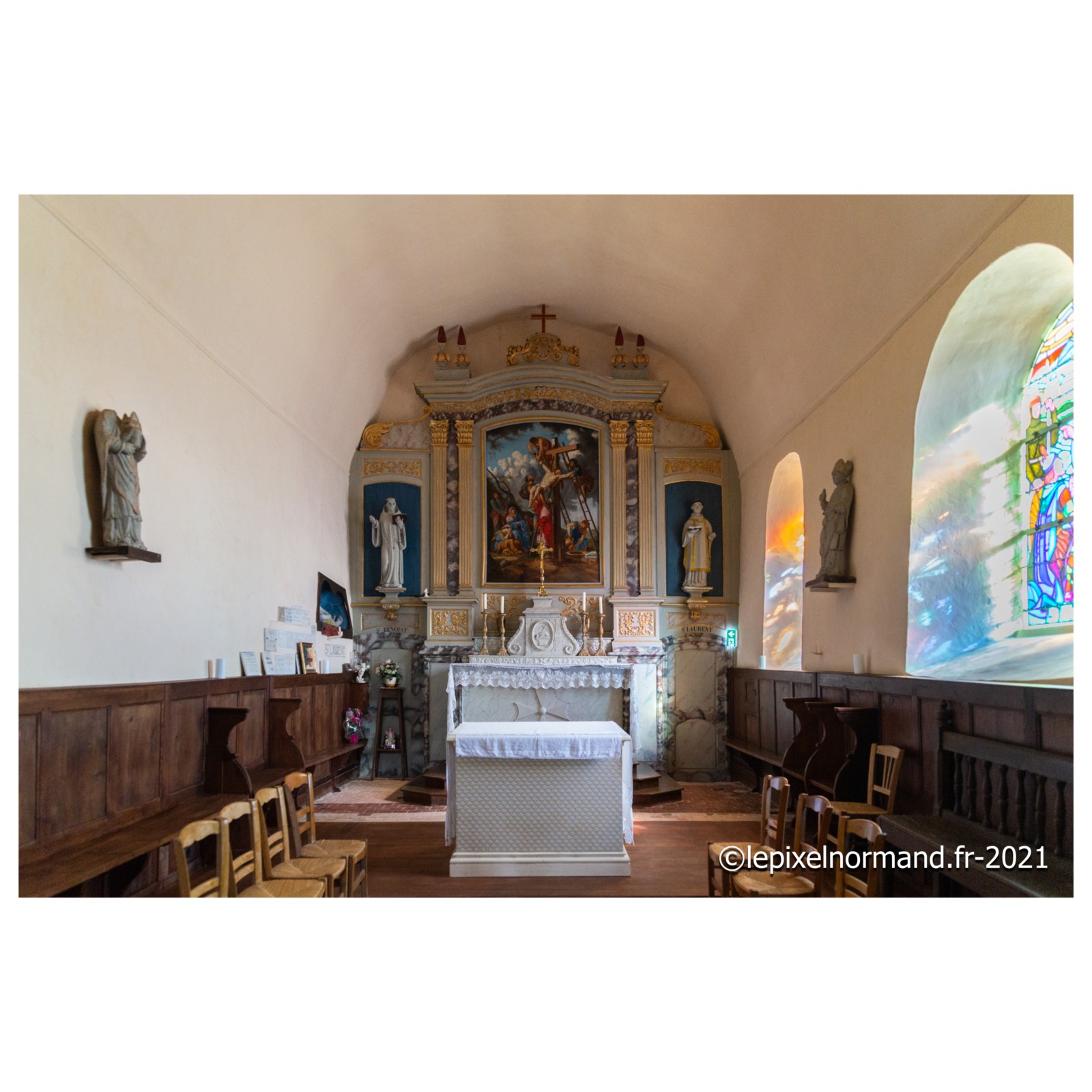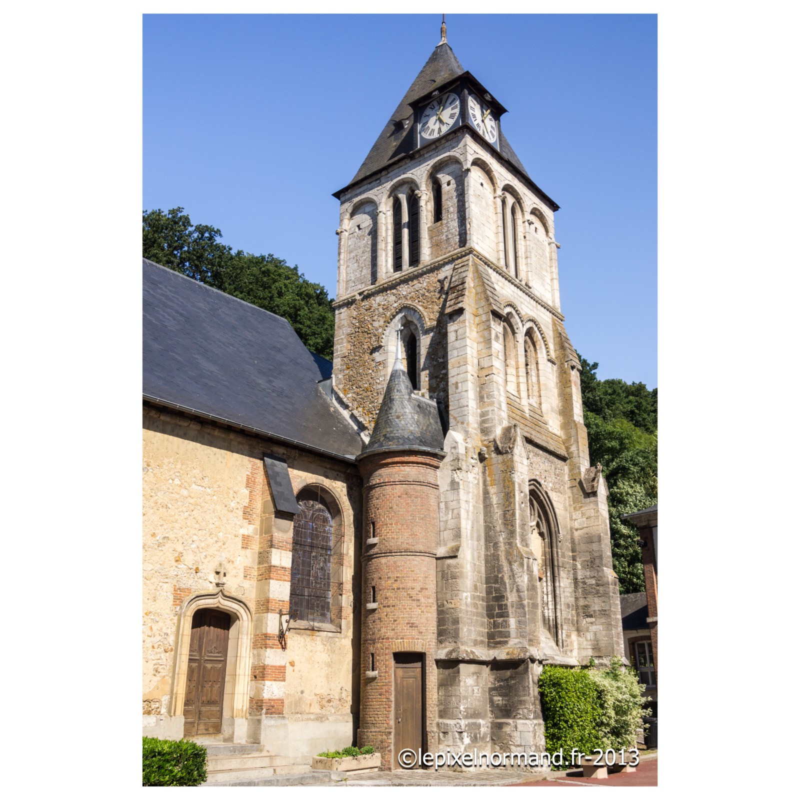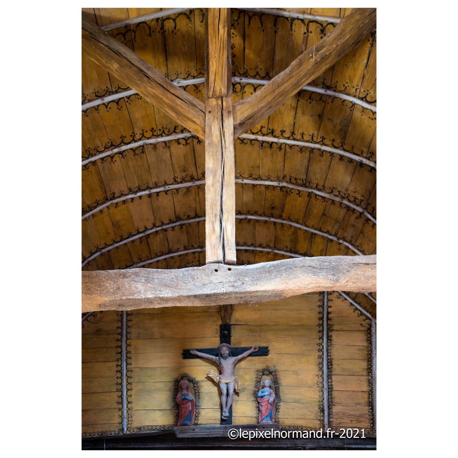 On raconte que c’est ce qui advint car la femme et la chaîne qui maintenait la pierre autour de son coup surnagèrent. En ex-voto et dans son repentir, le Sir fit encastrer la pierre miraculeuse dans le mur de l’église, juste au pied de la statue de Notre-Dame (photo 4 de l'église).