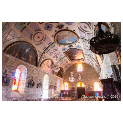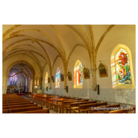 L’art roman est particulièrement bien représenté notamment sur les chapiteaux de la nef qui datent du XIIe siècle ainsi que le chœur qui fut agrandi au XVe siècle dans le plus pur style gothique avec l’ajout d’un collatéral et d’une chapelle au sud. L’arc triomphal entre la nef et le chœur date du XIIIe siècle. Une autre chapelle au nord sera ajoutée en 1827-1828. Elle offre également une très haute flèche ornée servant d’amer aux bateaux, visible de très loin, l’église étant située sur une butte. En 1688, la flèche s’écroule tuant le prêtre en cours d’office.