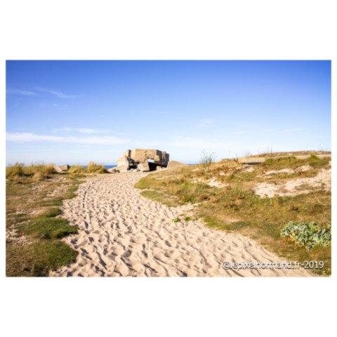 Éparpillés sur une très longue langue de sable, les blockhaus de béton subissent depuis 1944 les assauts de la mer et des tempêtes hivernales. Démantibulés, ils finiront en sable. En attendant, ils servent de supports éphémères aux artistes.