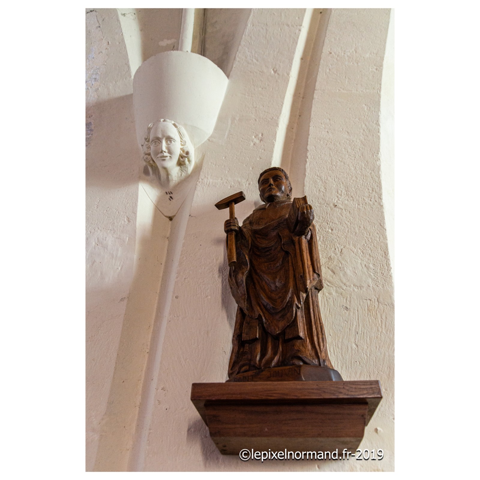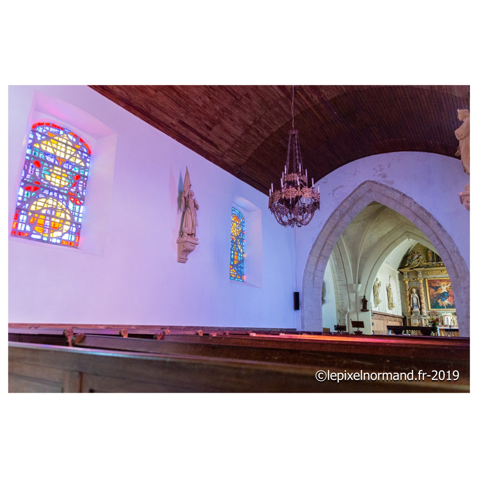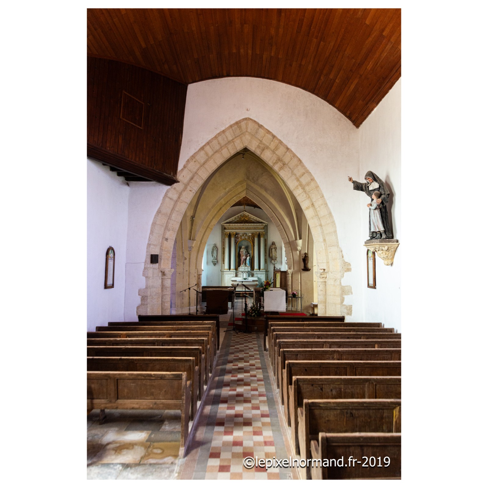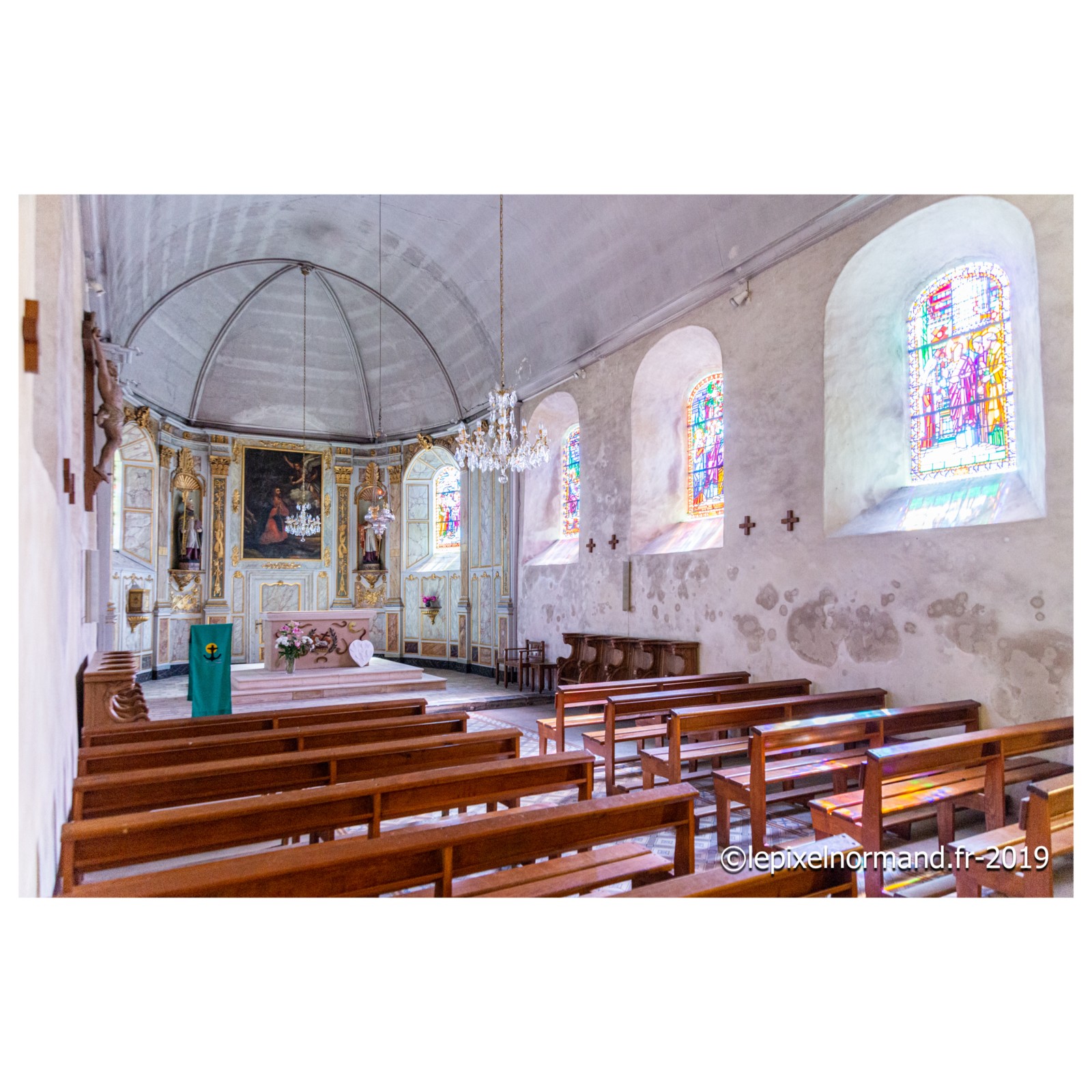 Ses origines remontent au XIe siècle, mais il ne reste rien de cette époque, le chœur et la nef étant profondément remaniés vers 1780. Le clocher en bâtière est érigé vers 1685. Le chœur peint et lambrissé possède un tableau représentant le Christ au jardin des oliviers et deux niches abritant une statue de Saint-Hermeland à gauche et Saint-Martin à droite. L’église possède un riche mobilier : autels anciens dans les chapelles, bancs de chœur ou stalles du XVIIIe siècle ainsi qu’une magnifique chaire à prêcher en bois sculpté datant du dernier quart du XVIIIe siècle.