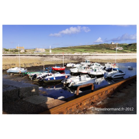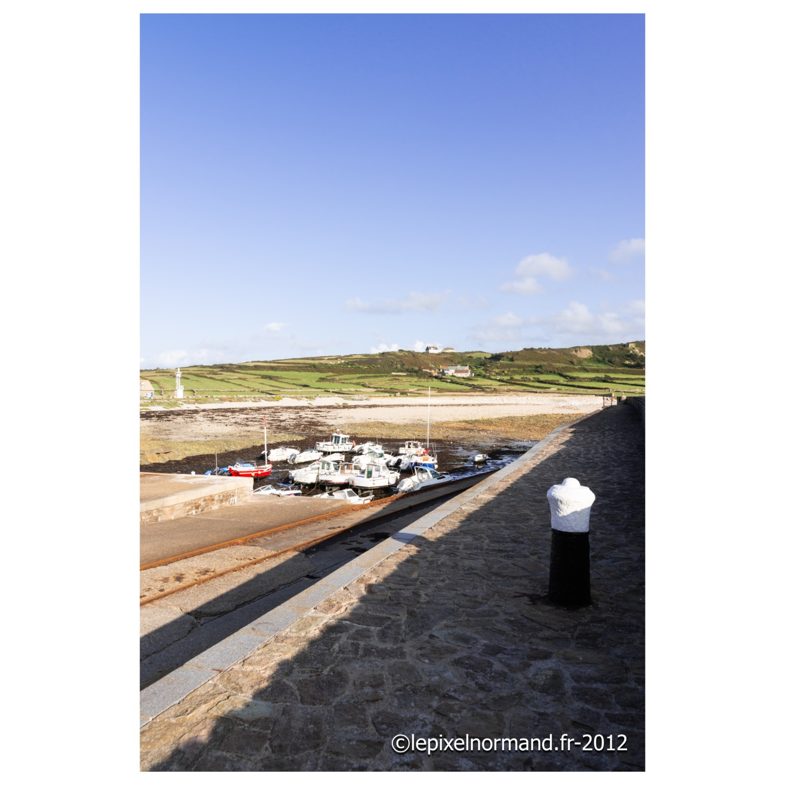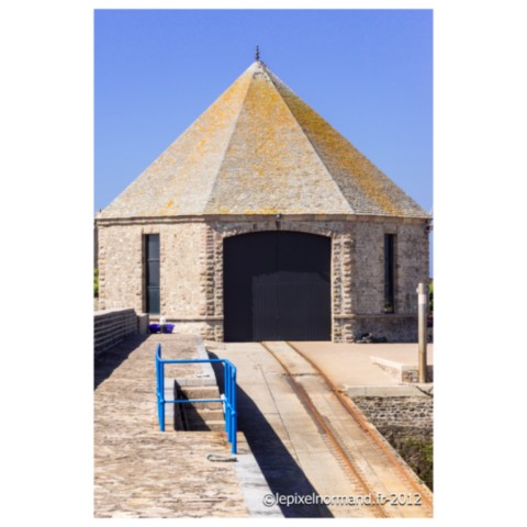 Situé à 800 mètres du rivage, le phare signale le raz Blanchard, l’un des plus forts courants marins d’Europe et qui fut la cause de multiples naufrages de navires sur cette côte. Il a été construit à partir de 1834 et mis en service en 1837. D’abord électrifié en 1971, il sera automatisé en 1989, les derniers gardiens le quittent en mai 1990. La décision d’installer une station de sauvetage fut prise en 1868. L’endroit est particulièrement bien choisi au vue des multiples naufrages survenus sur cette côte. Le premier canot sera affecté en 1870. En 1878 sera décidé la construction d’un abri. Deux cales de lancement seront également construites, l’une du côté du port permettant les départs à marées hautes dans de bonnes conditions, l’autre, orientée vers la mer pour les sorties à marées basses. Le bâtiment est doté d’une plaque tournante permettant d’utiliser l’un ou l’autre des deux rails de descente à la mer.