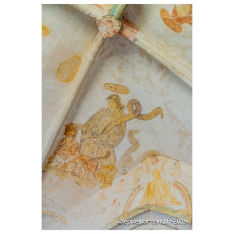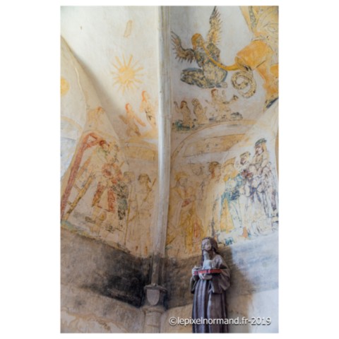 Avec les évangélistes représentés sur les fresques murales, une autre partie nous raconte une ancienne légende du pendu dépendu.