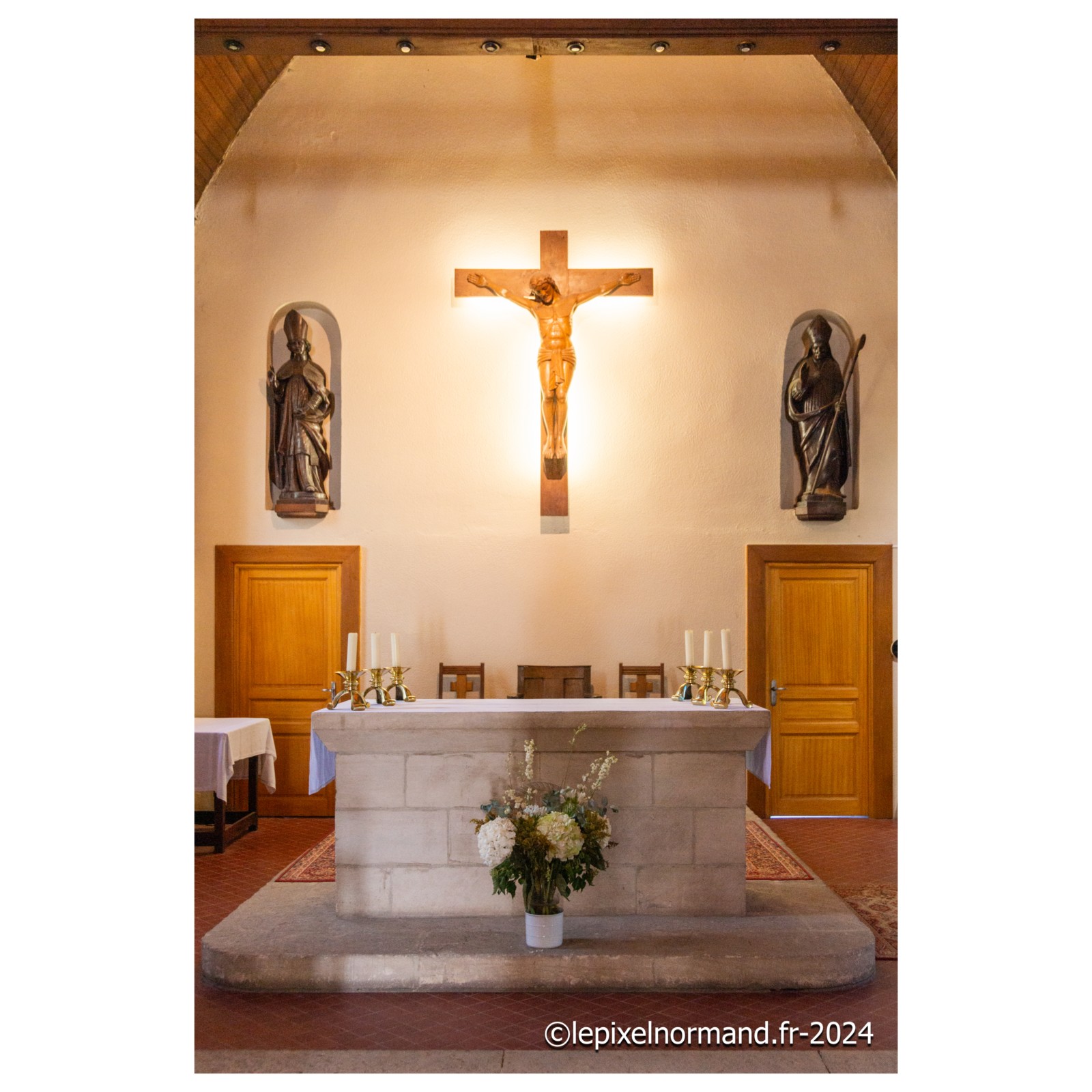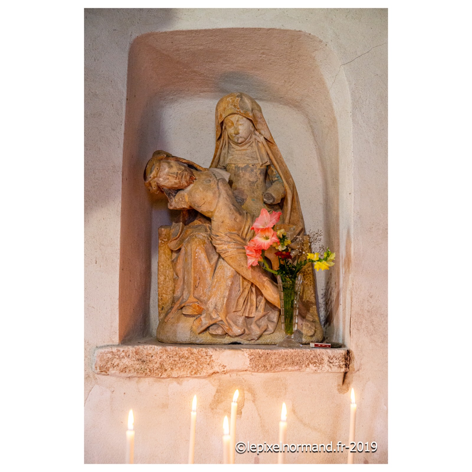Le calvaire en pierre aux abords de la chapelle date du XVIIe siècle. On raconte qu’un révolutionnaire voulut le renverser et le coucher à terre. Prenant appui sur un arbre voisin avec une corde, il ne réussi qu’à mutiler la pièce de pierre.