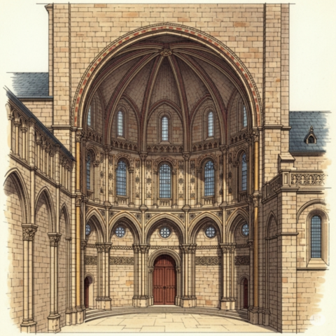 Un cul-de-four est une voûte en forme de quart de sphère, rappelant la forme du four à pain, utilisée dès l’Antiquité et jusqu’à la fin de la période romane pour couvrir les absides.