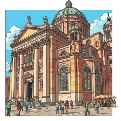 Le style néo-roman était un style en vogue à la fin du XIXe siècle inspiré par le style architectural roman des XIe et XIIe siècles. Les caractéristiques distinctives les plus couramment employées dans les bâtiments néo-romans étaient les voûtes en berceau, les fenêtres en arc plein cintre et les bandeaux. À la différence du style roman classique, cet « éclectisme » roman avait tendance à aller vers des arches et des fenêtres simplifiées par rapport à leurs modèles historiques.