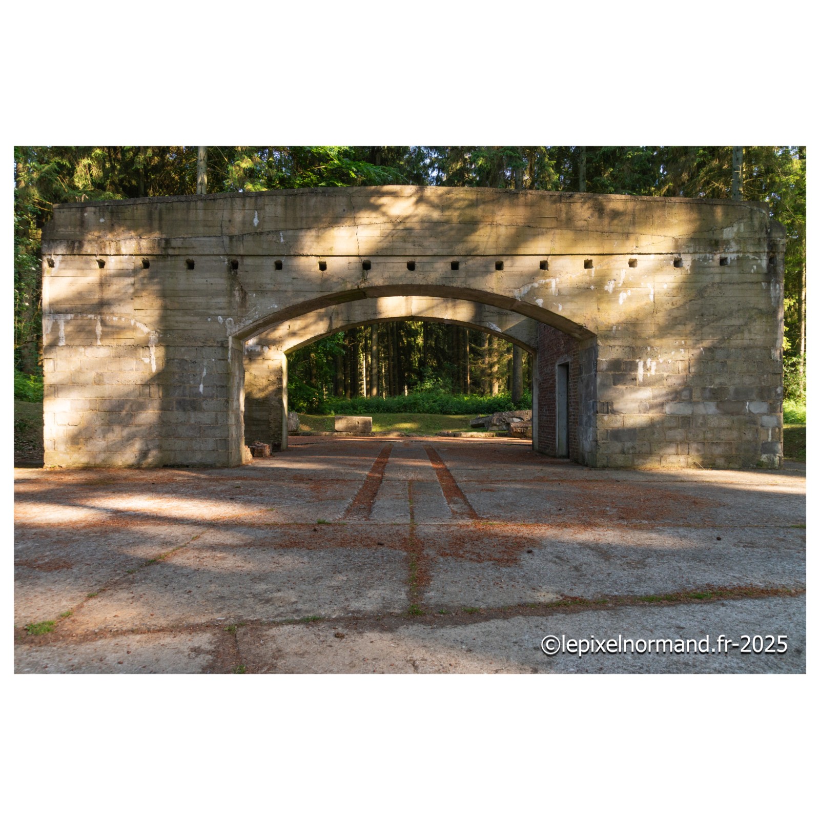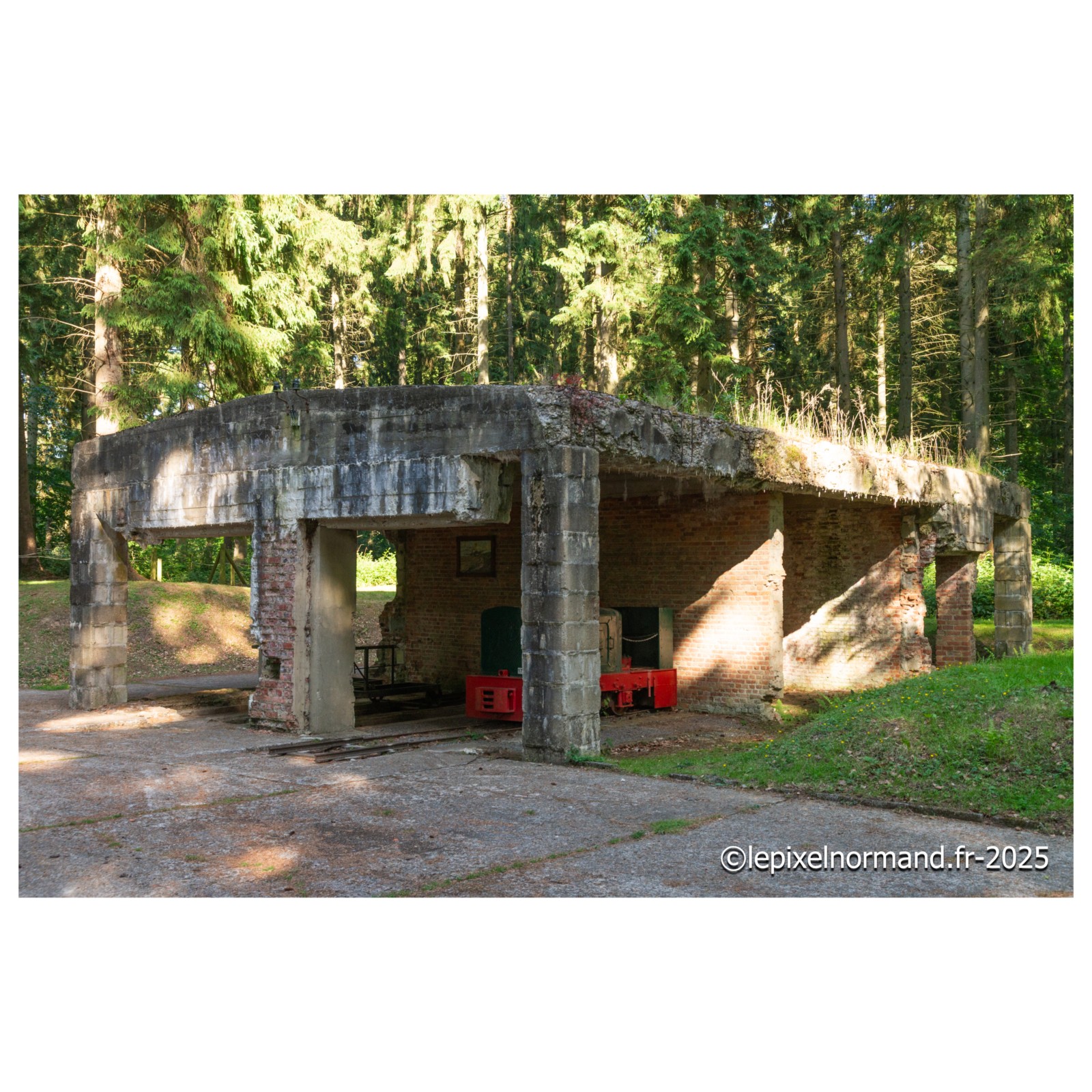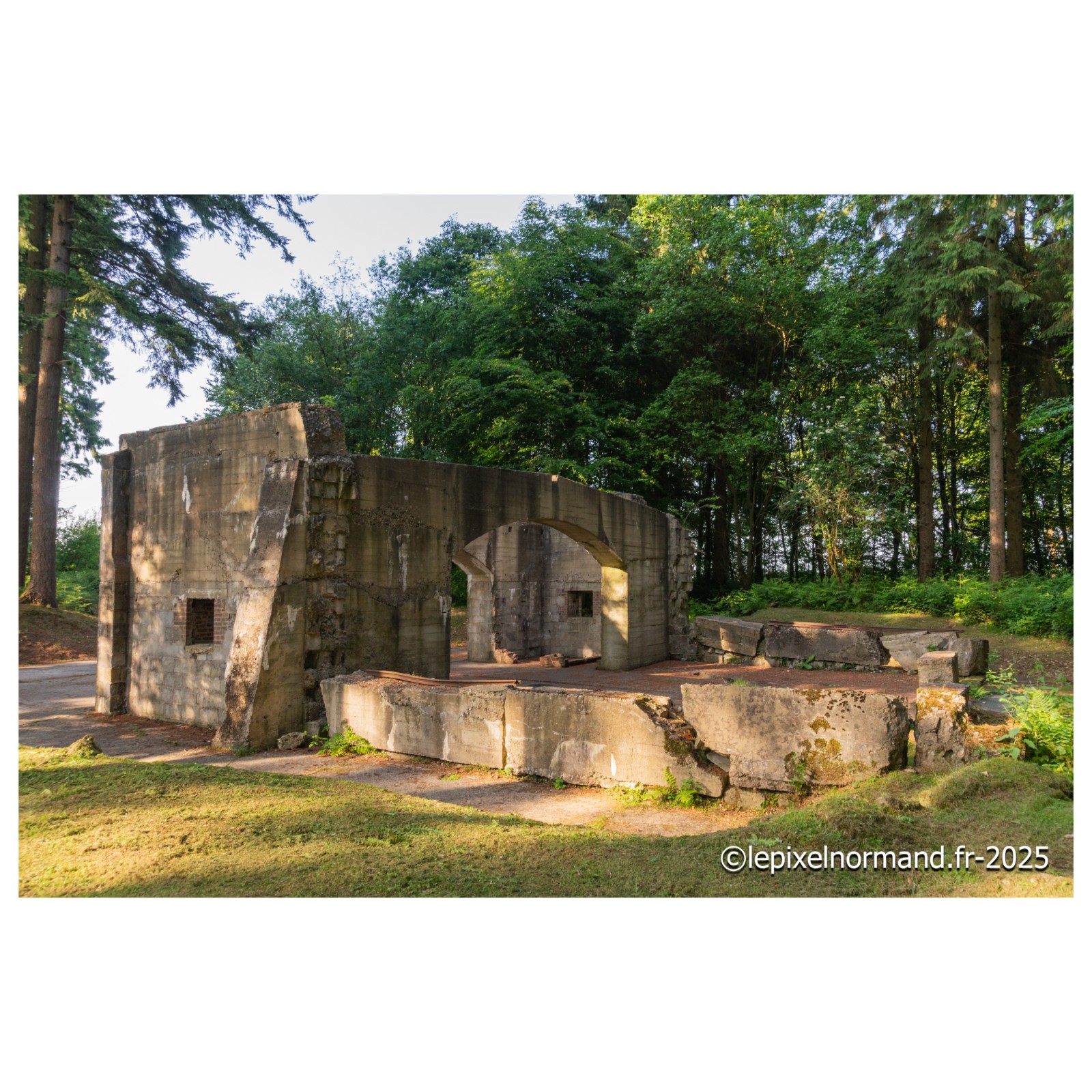 Organisation Todt en 1943, il faisait partie du vaste réseau de quelque 400 rampes de lancement de V1 que l'Allemagne nazie érigea le long des côtes Françaises avec l'intention de bombarder Londres. Bien que le site fût presque achevé, il ne devint jamais opérationnel, rendu inactif par les intenses bombardements alliés qui le ciblèrent dès la fin de 1943. Le complexe comprenait une rampe de lancement pour les missiles V1, un bunker de commande de tir semi-enterré, et plusieurs bâtiments de stockage en forme de "ski". Ces derniers, longs et étroits, étaient conçus pour abriter jusqu'à dix V1 chacun, leur forme visant à minimiser les dégâts en cas d'explosion. Un bunker d'assemblage permettait la préparation des missiles, et un bâtiment amagnétique (construit sans aucune pièce métallique) était essentiel pour calibrer le compas de navigation des V1, garantissant ainsi leur trajectoire. Le site disposait également d'installations annexes, comme une réserve d'eau et une station de pompage pour le nettoyage des rampes après les tirs d'essai, et un abri pour la réception des V1. Ces structures, dont certaines portent les marques des bombardements, témoignent de l'ampleur des efforts Allemands pour déployer leurs "armes secrètes" et des efforts Alliés pour les neutraliser.